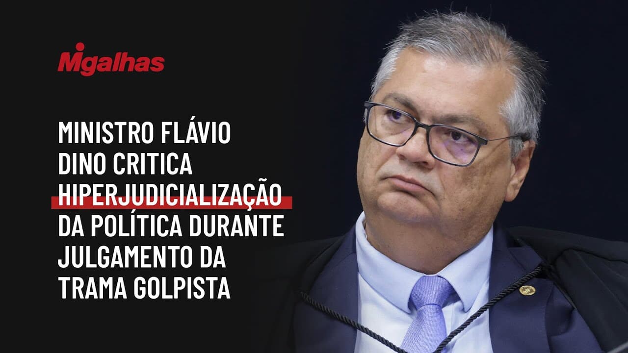 No julgamento da ação penal que apura a tentativa de golpe de Estado de 2022, o ministro Flávio Dino chamou atenção para o fenômeno da judicialização da política. Para ele, quando questões de natureza eminentemente política chegam em excesso ao Judiciário, isso revela uma "anomalia democrática", que não deve ser confundida com vigor das instituições.