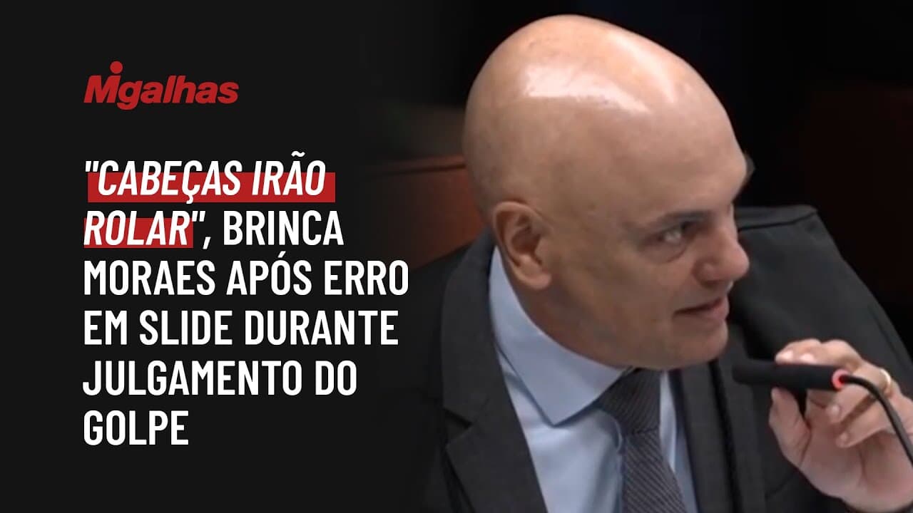 "Cabeças irão rolar", brinca Moraes após erro em slide durante julgamento