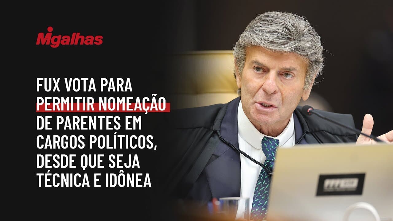 Ao votar, ministro Luiz Fux propôs o reconhecimento da constitucionalidade da lei municipal de Tupã/SP, entendendo que a vedação da súmula 13 não se aplica às nomeações para cargos de natureza política, como secretarias municipais, desde que observados os requisitos de qualificação técnica, idoneidade moral e ausência de nepotismo cruzado.
