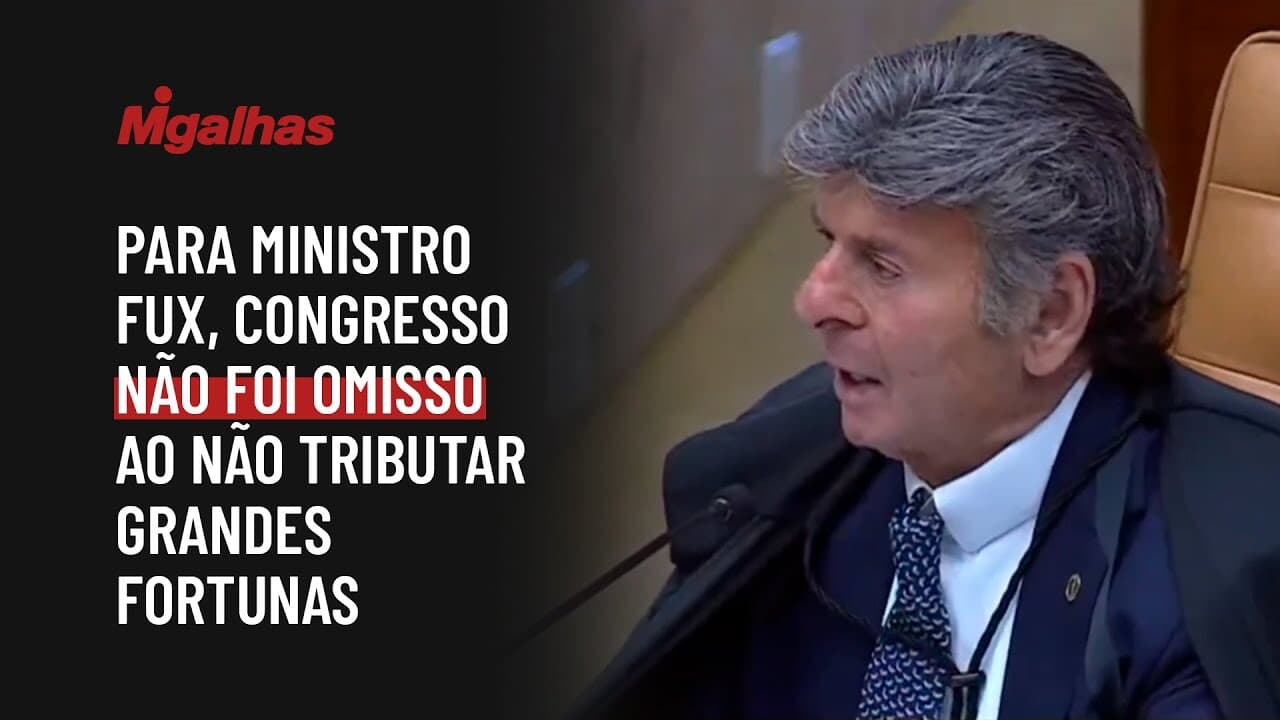 O ministro Luiz Fux apresentou voto divergente no julgamento sobre a omissão do Congresso Nacional em instituir o imposto sobre grandes fortunas.
