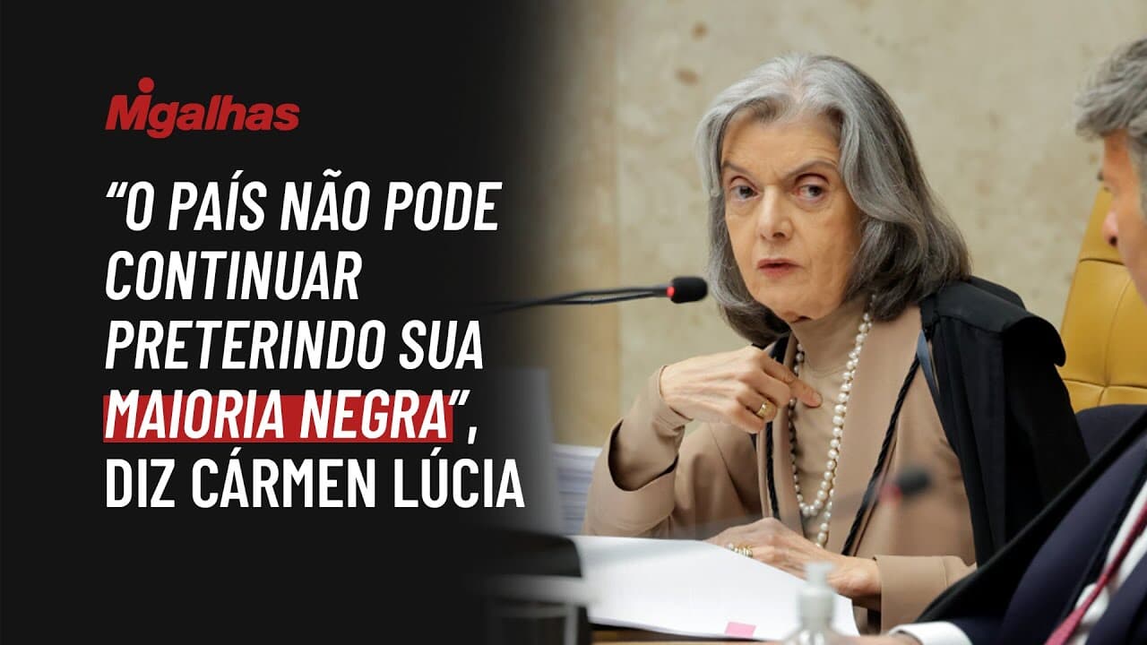 "O país não pode continuar preterindo sua maioria negra", diz Cármen Lúcia