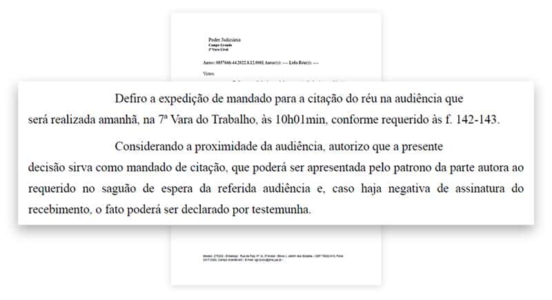 Juiz autoriza e réu em ação cível é citado durante audiência trabalhista