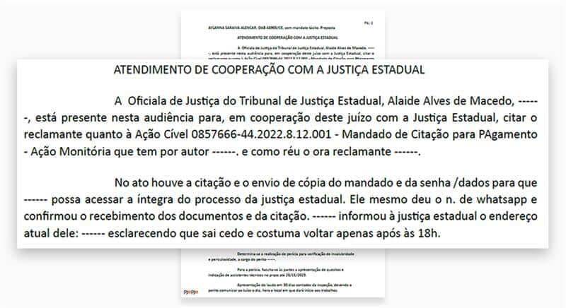 Um devedor, réu em ação monitória, foi citado durante audiência trabalhista na qual figurava como reclamante. O caso indica cooperação inédita entre a Justiça comum e a trabalhista, após tentativas infrutíferas de citação do devedor no âmbito cível.