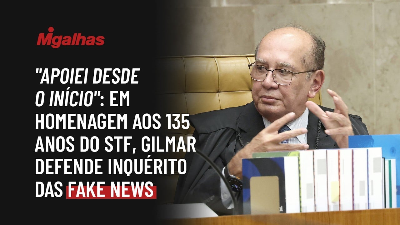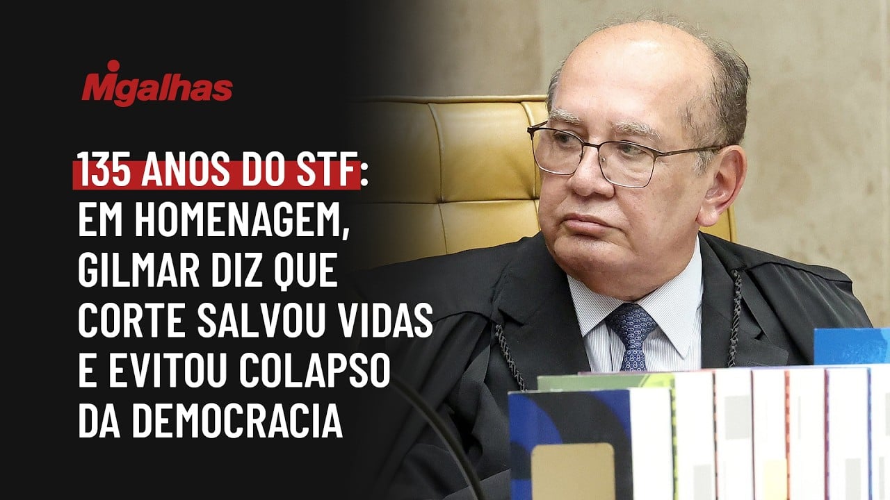 Em sessão plenária, nesta quinta-feira, 26, ministro Gilmar Mendes, decano do STF, prestou homenagem aos 135 anos do Supremo, celebrados no próximo dia 28, e destacou o papel histórico da Corte como guardiã da Constituição e da democracia brasileira, especialmente em períodos de crise institucional.