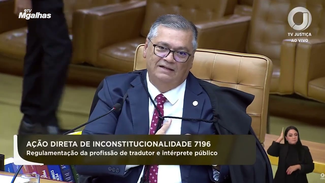 Durante julgamento do plenário do STF que analisava se a lei 14.195/21, que alterou regras da atividade de tradutores e intérpretes públicos, é compatível com a CF, ministro Flávio Dino parafraseou, em certo jogo de palavras, frase atribuída ao ministro Luiz Fux para ilustrar seu voto.