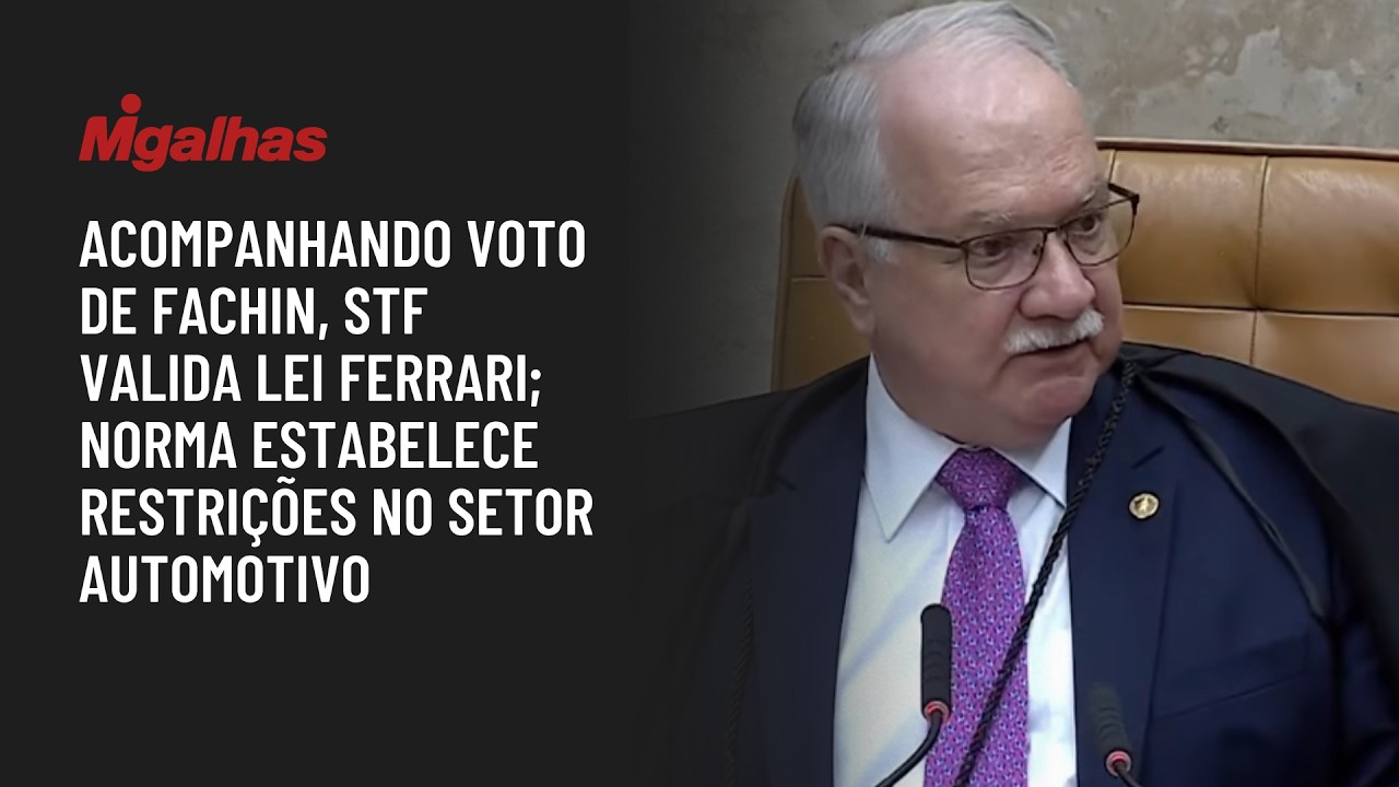 Ministro Edson Fachin votou pela constitucionalidade da lei Ferrari, ao reconhecer o diploma como expressão legítima da função regulatória do Estado na ordem econômica.