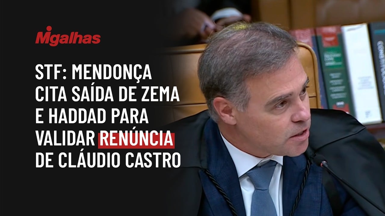 STF: Mendonça cita saída de Zema e Haddad para validar renúncia de Cláudio Castro