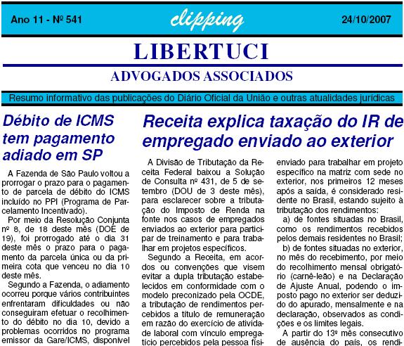 Clipping semanal elaborado pelo escritório Libertuci - Advogados Associados