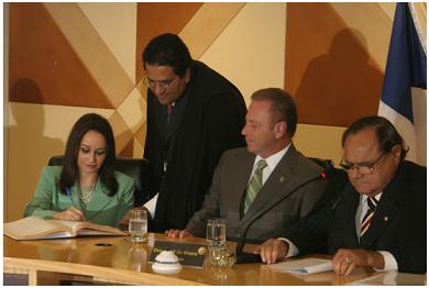 A sessão solene de posse do Juiz Marcelo Velasco Nascimento Albernaz como Membro Efetivo da Corte do TRE foi realizada ontem, 10/11, pela manhã, no Pleno do TRE. A presidente do TJ, desembargadora Willamara Leila, prestigiou o evento compondo a mesa de honra, juntamente com o vice-governador Eduardo Machado; o deputado estadual Stalin Bucar; o procurador Geral de Justiça, Clenan Renault de Melo Pereira; e o presidente da OAB, Ercílio Bezerra de Castro Filho.